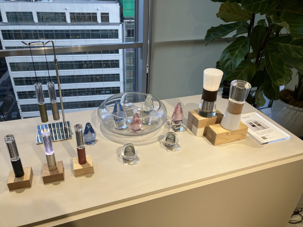 手のひらサイズのオブジェのスフェラーキューブやスフェラーペンギンなどの製品が実際にごらんいただけます。